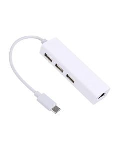 Adaptateur USB Type-C vers HUB 3.0 – Interfaces: 3x USB, 1x RJ45 Ethernet – Permet de connecter jusqu’à trois périphériques USB simultanément – Couleur: Blanc